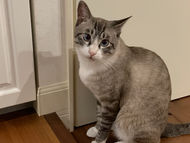 完全室内飼いだったようで、初めはとてもシャイでおとなしく過ごしていました。慣れてきたら抱っこが大好きで、体を撫でるとすり寄ってくる甘えん坊さんになりました。